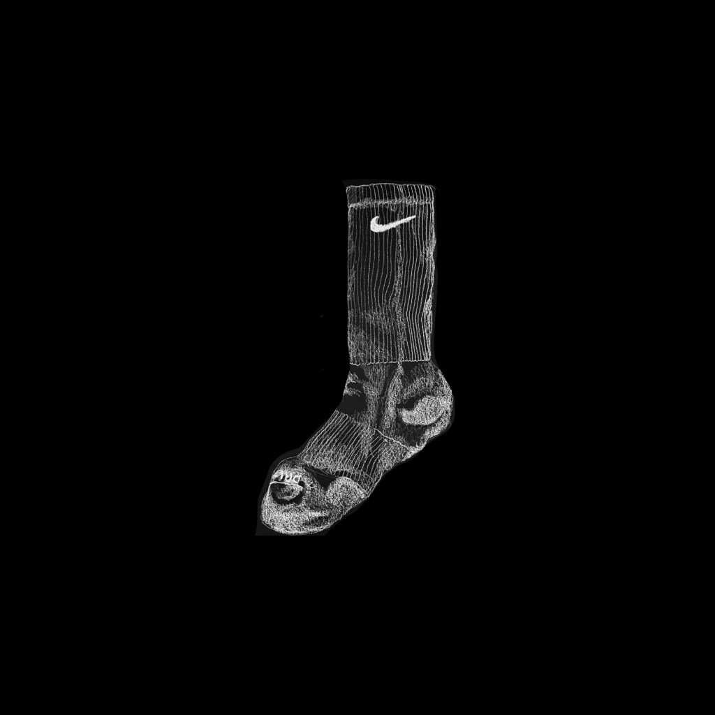 This is a white Nike Dri-Fit crew sock. What’s harder than drawing it is trying to match over a dozen of them in the laundry as some are 3 months old, 6 months old and others are 9 months plus. You have to match them based on wear, discoloring and thinness at the heel. I’d rather draw it!